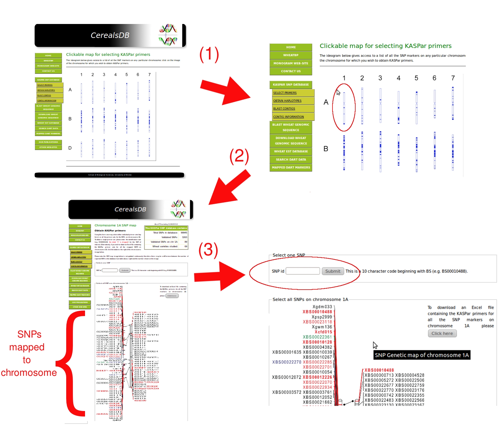 - Information on a specific SNP on the map can be obtained by entering its BS SNP code into the "Select one SNP" field and pressing the submit button. Alternatively, all of the primers for each SNP on this chromosome can be downloaded in Excel format by pressing the "Click here" button.